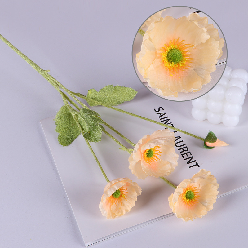 Artificial Poppy Silk Flowers with Stems - White