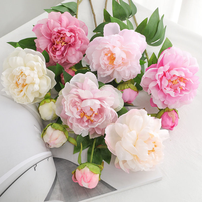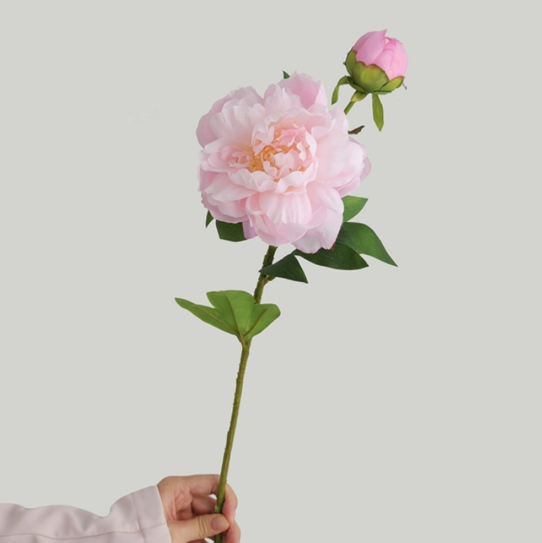 Size: The silk peony is about 27 inches/68cm long, 8 inches/20cm wide, with a large flower diameter of about 6 inches/15cm, flower buds of about 1.57 inches/4cm, and green leaves of about 7 inches/17.5cm long.
