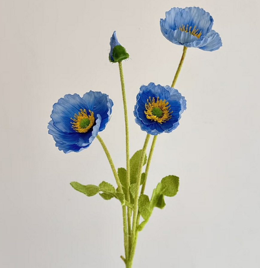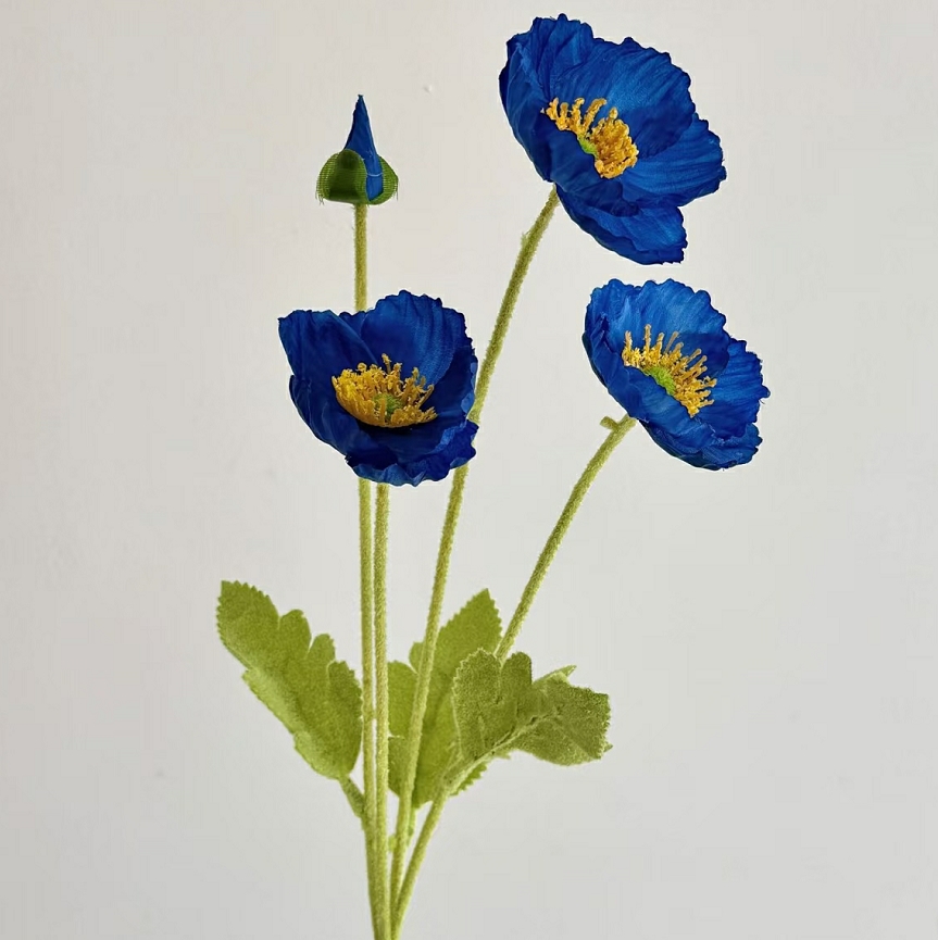 Artificial Poppy Silk Flowers with Stems - Dark Blue