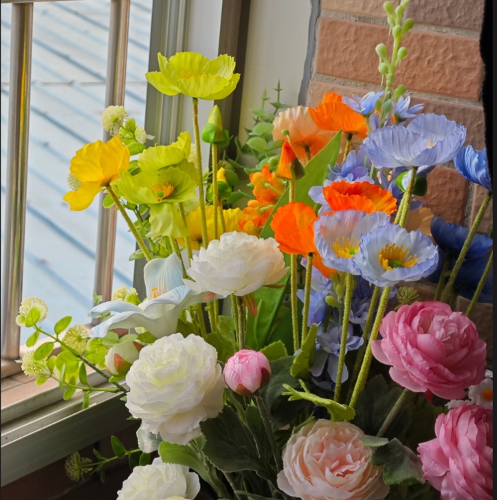 Artificial Poppy Silk Flowers with Stems - Green