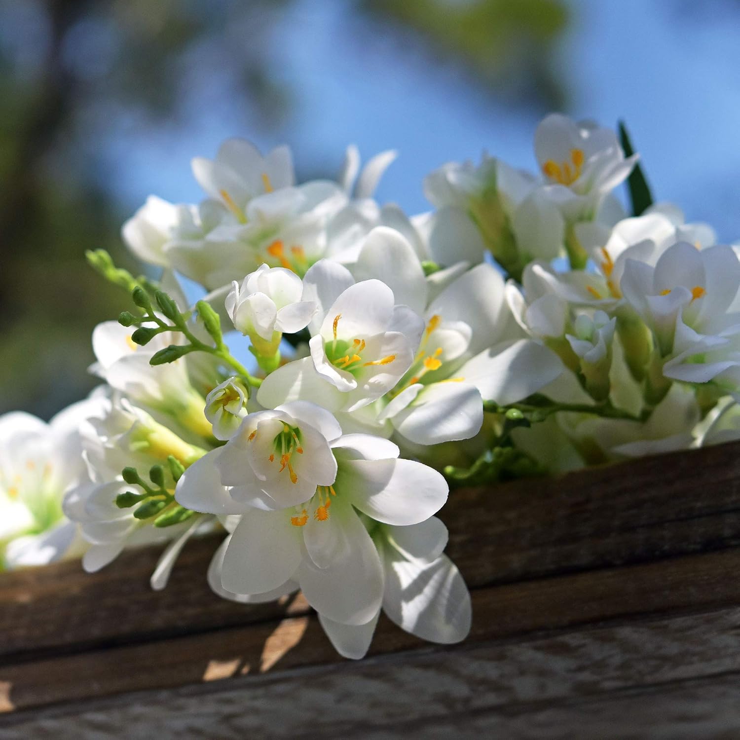 REALISTIC - artificial freesias are almost natural with blooming flowers and full blooms; both sides of petals have real feel and are 3D textured just like real freesias.