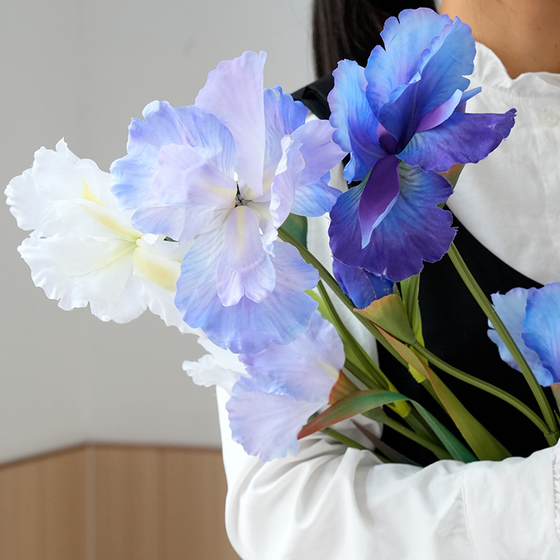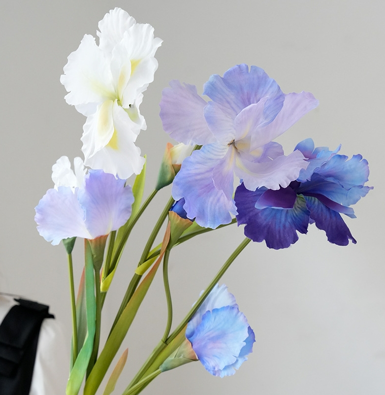 Materials:Iris flowers are made of silk material, with bright colors. Compared with PU flowers, our silk flowers will not turn yellow or fade, and will always remain beautiful. The flower stem is made of soft plastic and wrapped in soft thin iron wire, which can be bent and cut freely, making it very convenient for DIY.