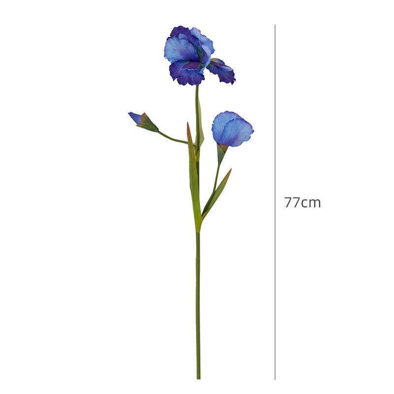 Size: The total length of iris is about 31.1 inches/79 centimeters. Artificial flower has three branches, each with a large flower head, a small flower head, and a small flower bud. The flower stem can be bent and trimmed, fake flowers are suitable for vases of different heights.