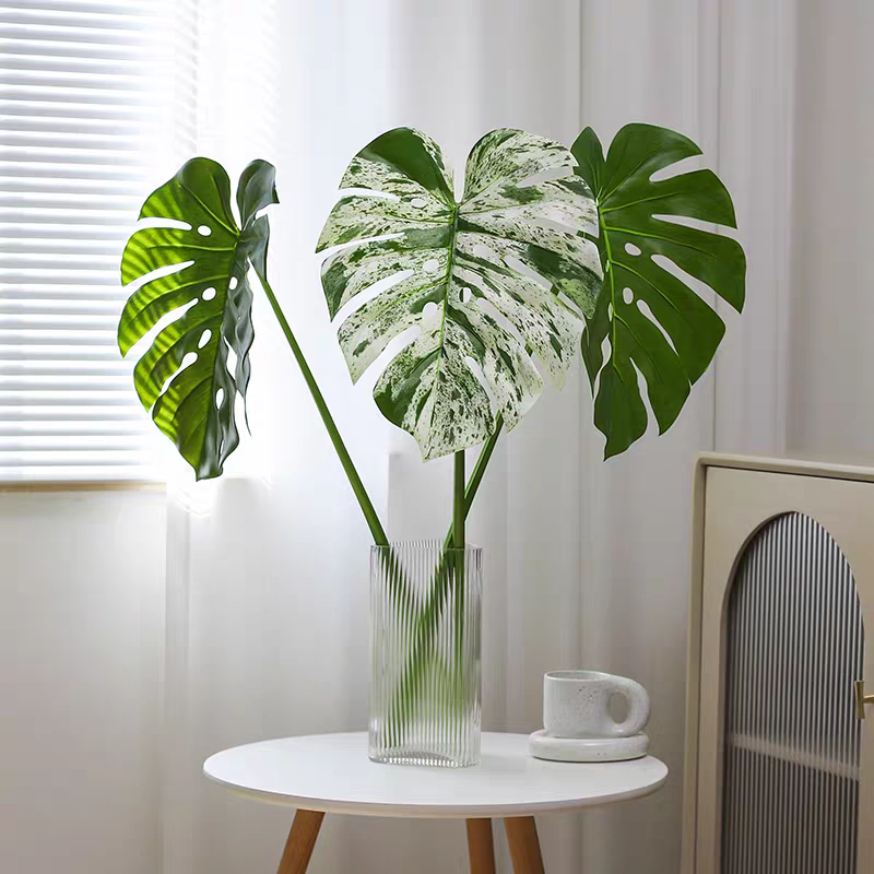 Real Touch Large Tropical Leaf Monstera - Snow Green