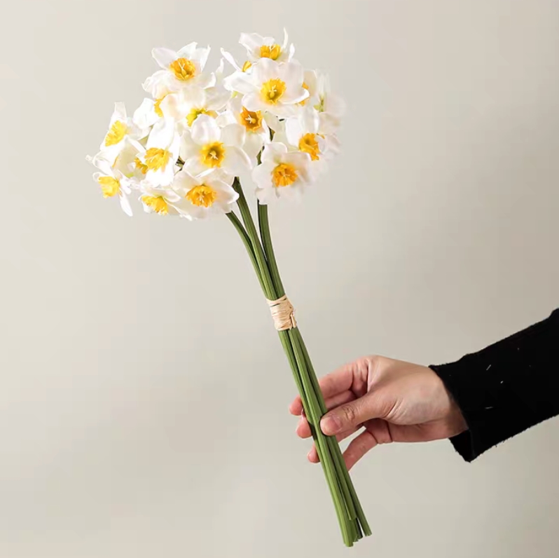 Daffodils Artificial Flowers Real Touch Fake Narcissus - White