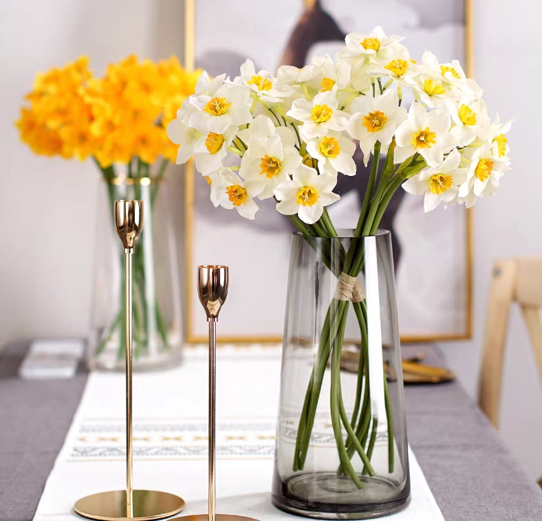REAL TOUCH DAFFOLDILS: The beautiful and lifelike daffodil bulbs are made of high quality fabric silk petals and realistic textured stems. The stems are very long and you will need a very tall container or vase to hold them unless you are planning to bend or trim the stems.