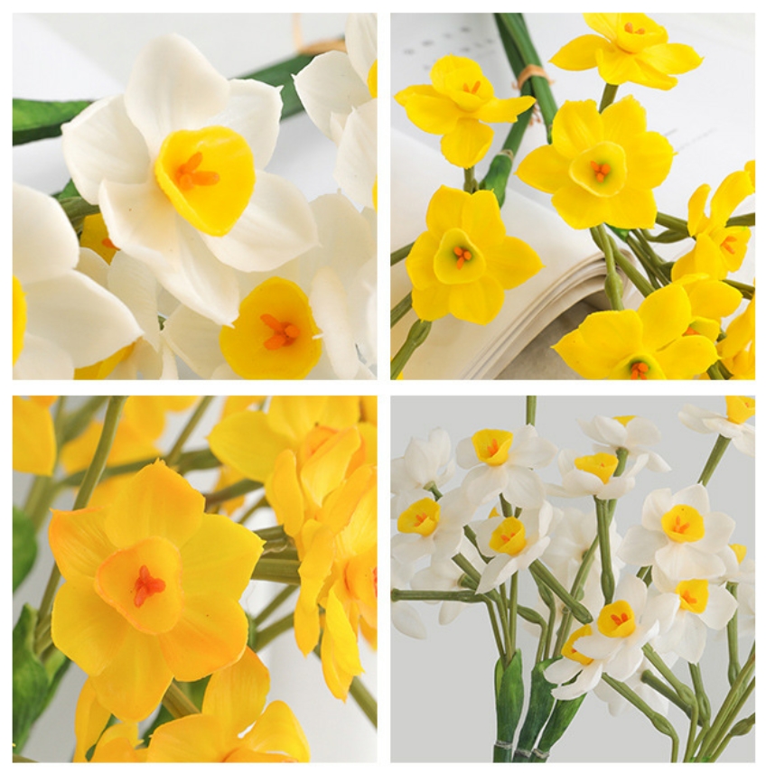 VERSATILE DECOR: Fake daffodil bunch allows you to incorporate them into a variety of settings and styles. And perfect for wedding, party, home, office, garden, hotel, centerpieces decoration, or DIY flower bouquets, lapel boutonnieres, gift packages, etc.