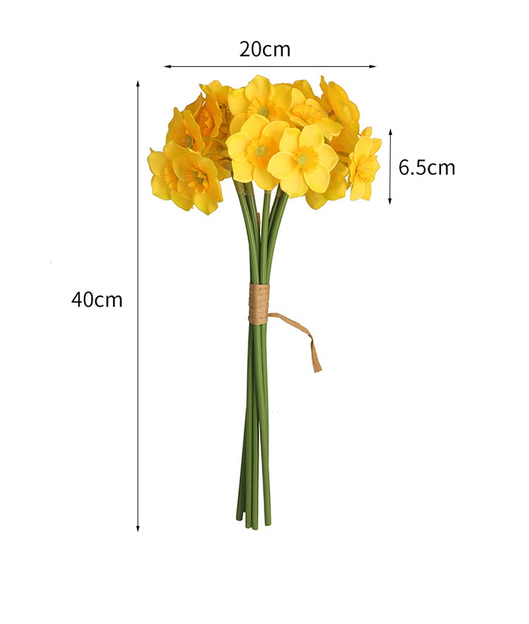 SIZE: The artificial daffodils measures about 16 ½'' (40cm) in length. Feel free to bend or trim these long stems.