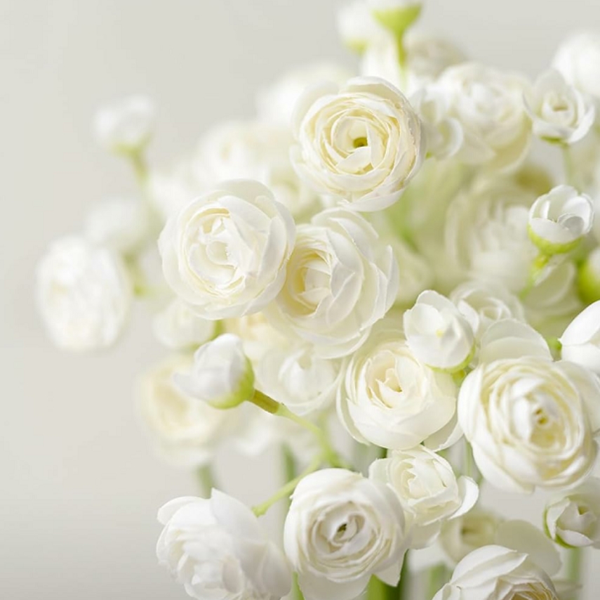 Artificial Flower Faux Silk Mini Ranunculus - White
