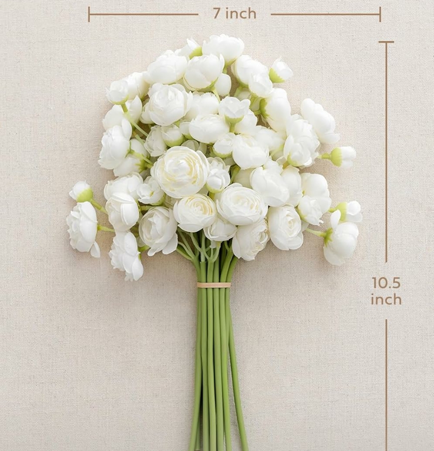 High-Quality Material: These ranunculus are made of high-quality silk. The stems are made of iron wire wrapped with green floral tape, which is extremely flexible and easy to cut.