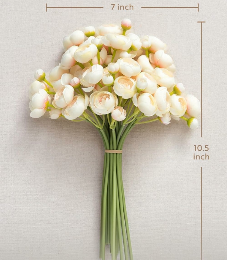 High-Quality Material: These ranunculus are made of high-quality silk. The stems are made of iron wire wrapped with green floral tape, which is extremely flexible and easy to cut.
