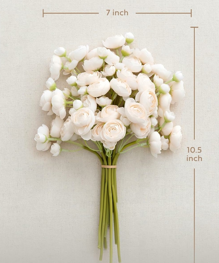 High-Quality Material: These ranunculus are made of high-quality silk. The stems are made of iron wire wrapped with green floral tape, which is extremely flexible and easy to cut.