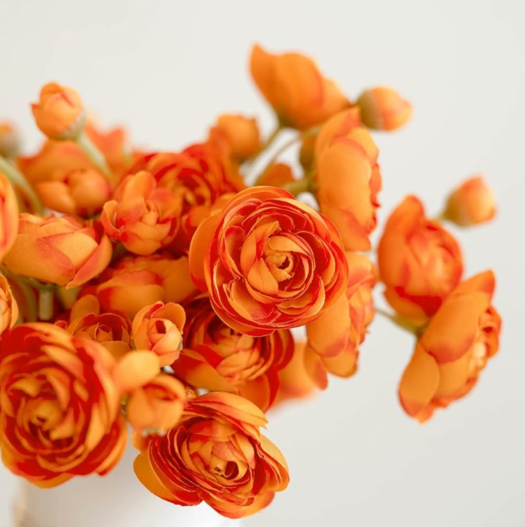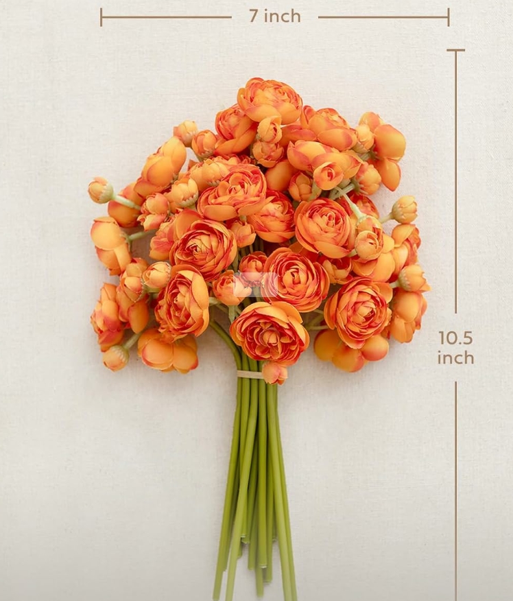 High-Quality Material: These ranunculus are made of high-quality silk. The stems are made of iron wire wrapped with green floral tape, which is extremely flexible and easy to cut.