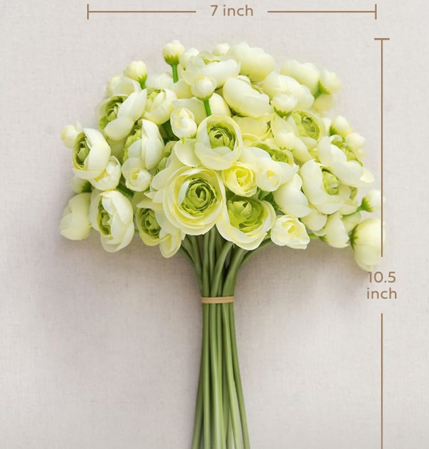 High-Quality Material: These ranunculus are made of high-quality silk. The stems are made of iron wire wrapped with green floral tape, which is extremely flexible and easy to cut.