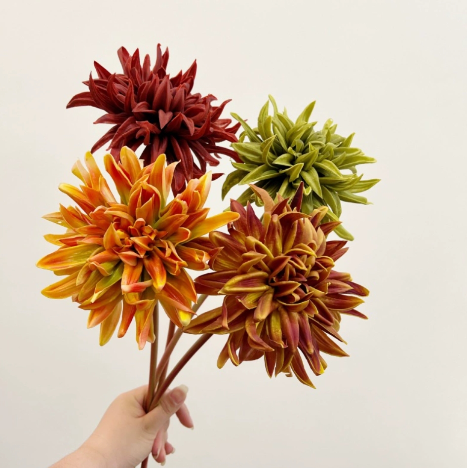 Vintage PU Dahlia Artificial Flowers Stems for Autumn - Green