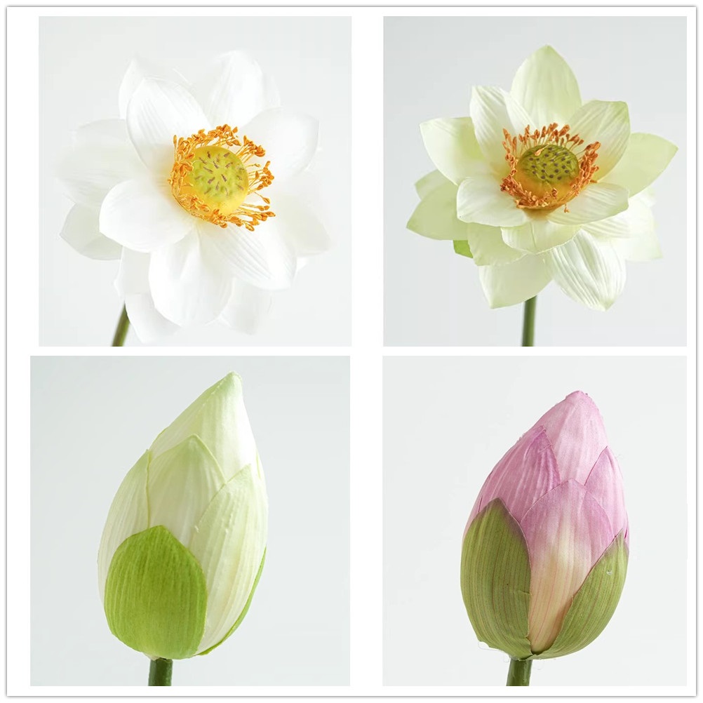 Artificial Lotus Flowers Stems Buds Pods Leaves Plants - White