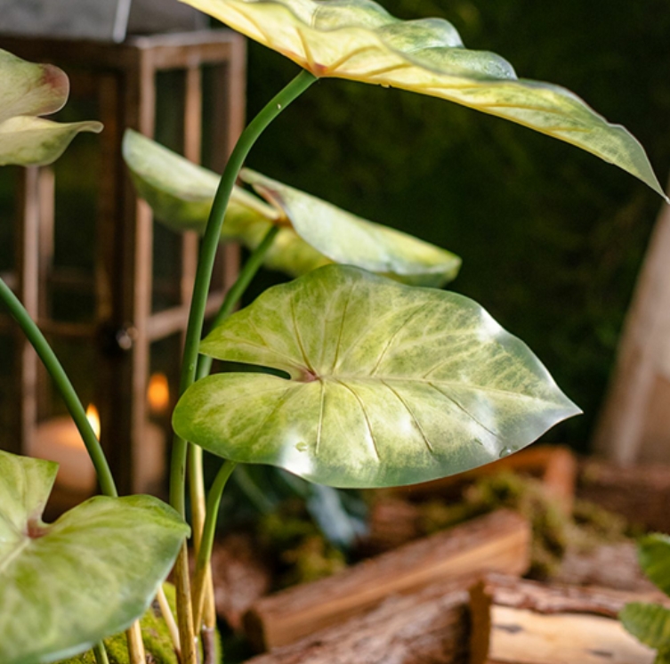 Close to nature: They have a very natural and realistic appearance to bring you lush whether indoors or outdoors. Artificial caladium plants can be kept fresh and beautiful year after year.