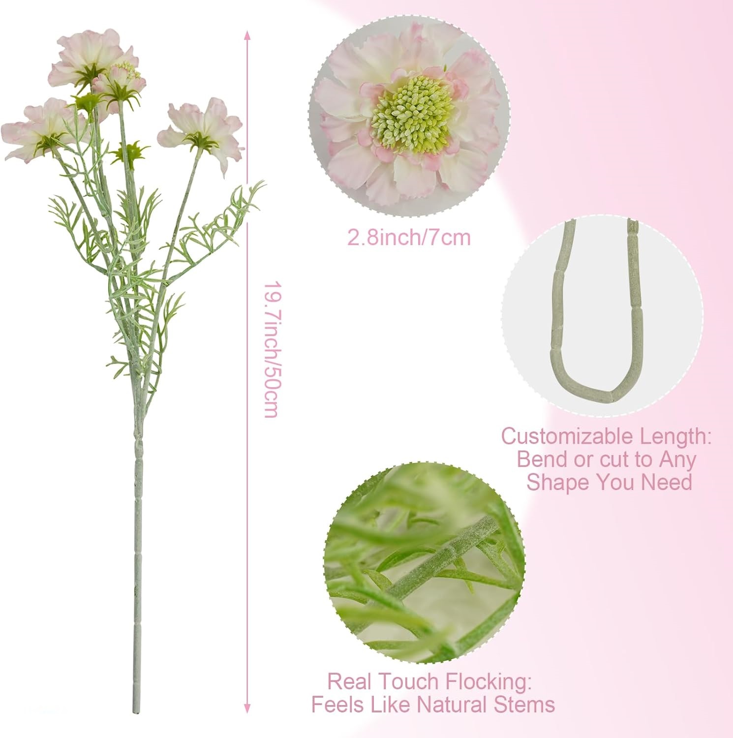 REALISTIC DESIGN: Delicately crafted silk petals with natural-looking texture and color variations, complete with detailed fluff along the faux scabiosa stems.