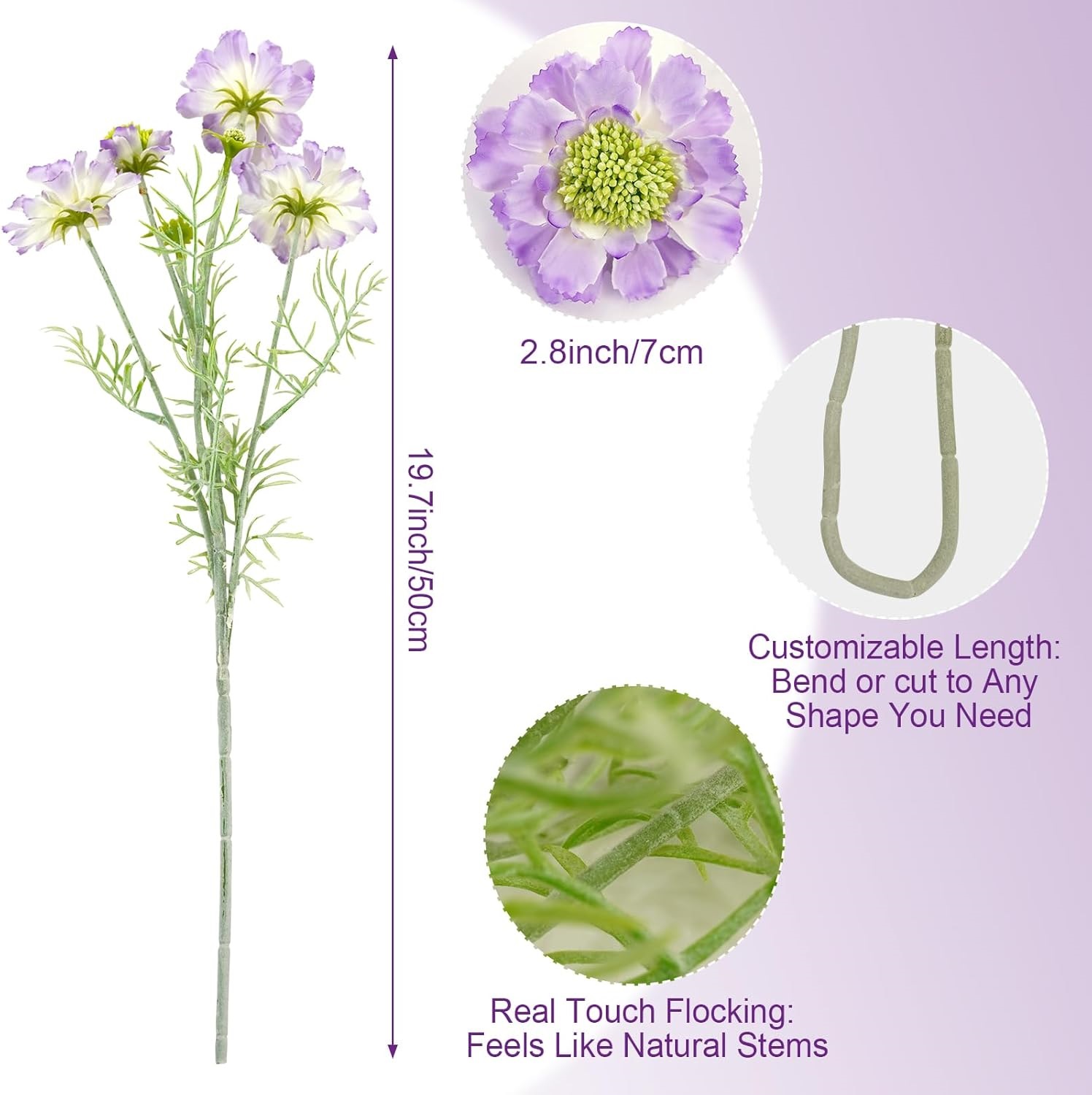 REALISTIC DESIGN: Delicately crafted silk petals with natural-looking texture and color variations, complete with detailed fluff along the faux scabiosa stems.