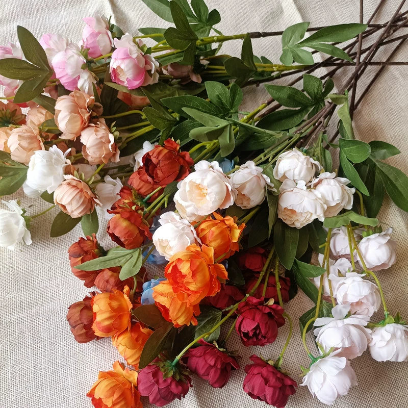 Pretty Ranunculus: Artificial ranunculus made of faux silk, featuring vibrant colors and multiple layers of petals for a rich, realistic look.
