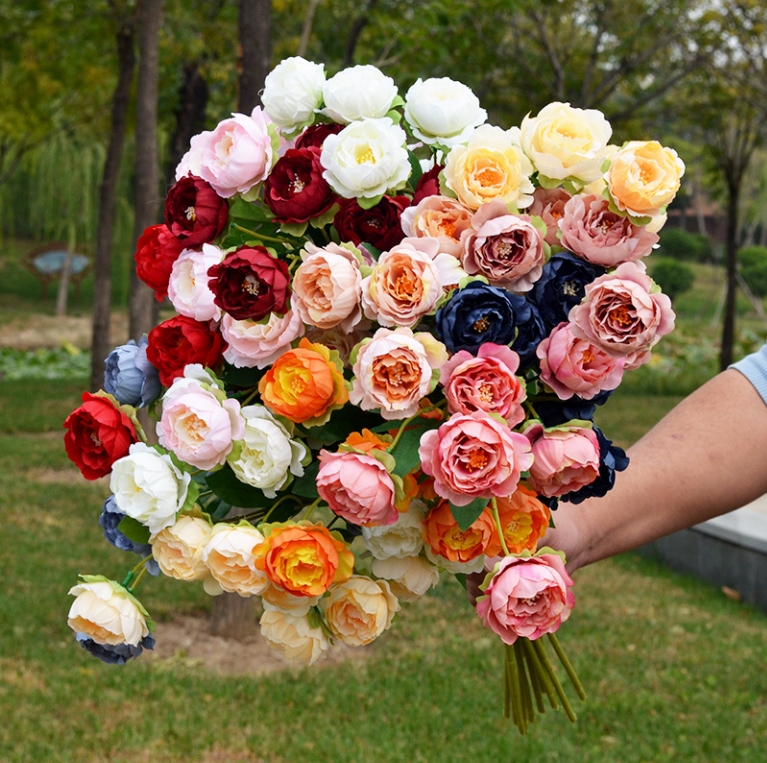 Pretty Ranunculus: Artificial ranunculus made of faux silk, featuring vibrant colors and multiple layers of petals for a rich, realistic look.