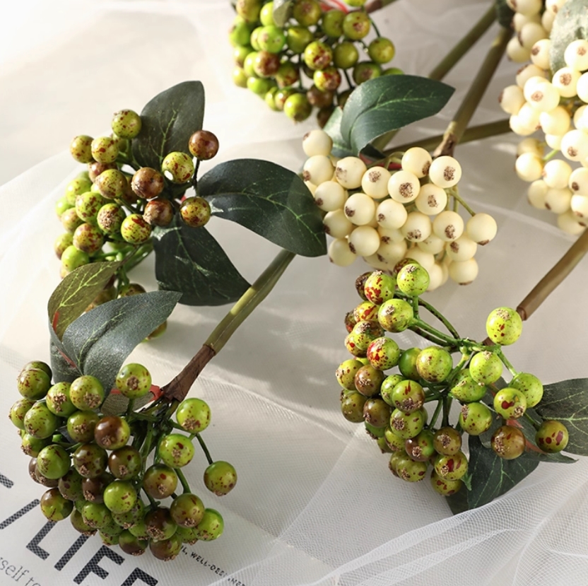 Artificial Berry Stems Fruit Picks - Dark Green