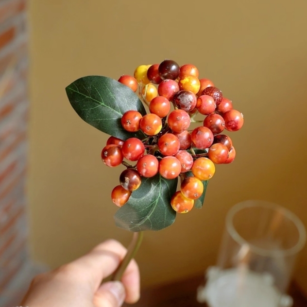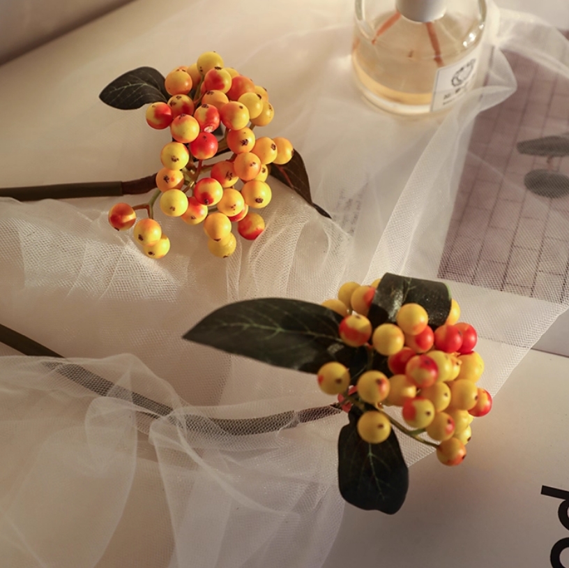Artificial Berry Stems Fruit Picks - Orange