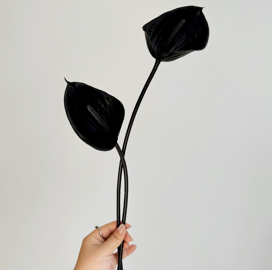 Artificial Anthurium Lily Flowers Stems - Black