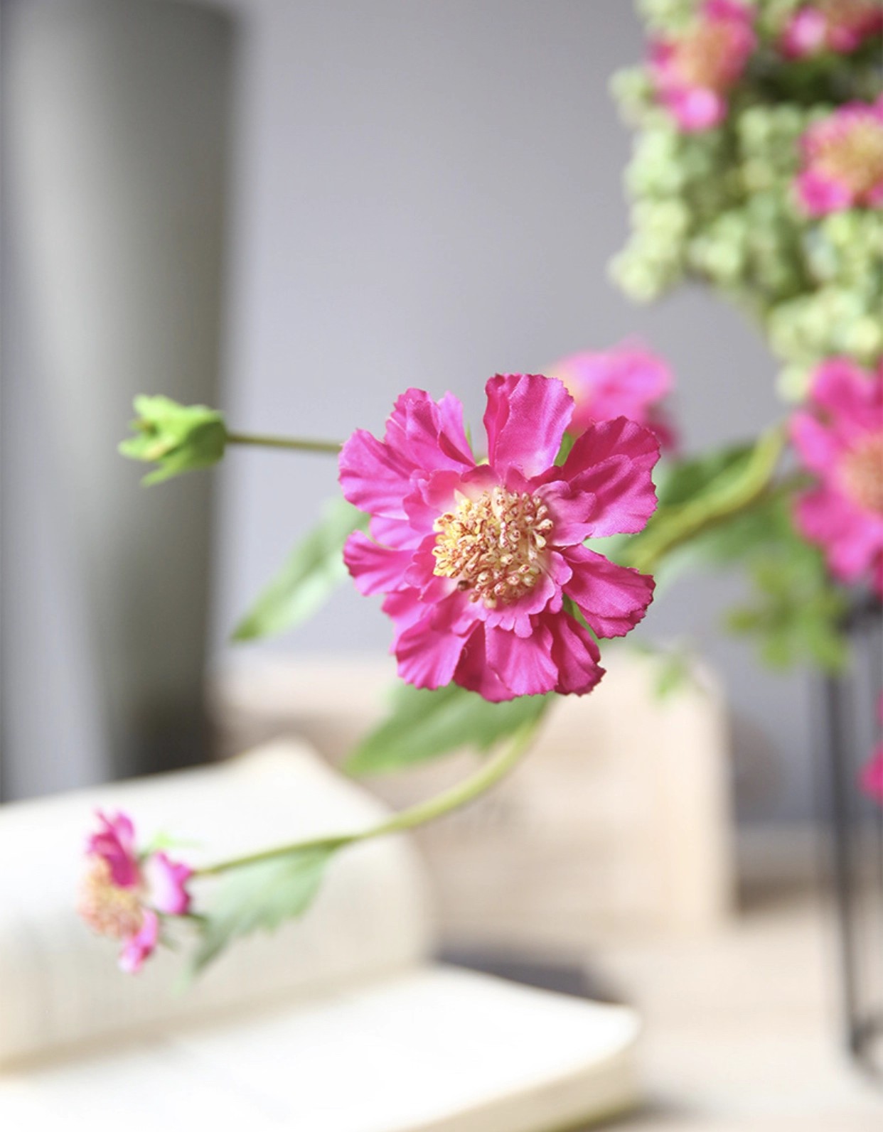 Artificial Scabiosa Flowers Spray - Fuchsia