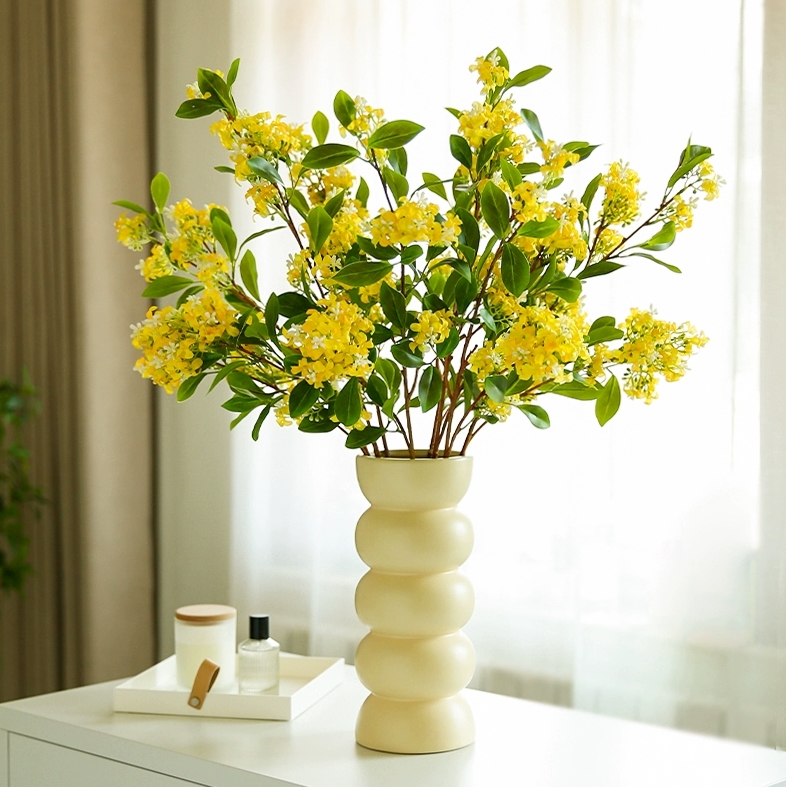⦁ The surface of the branches of our artificial osmanthus is glossy and resilient. With a built-in iron wire, these artificial greenery stems allow for flexible bending and shaping to fit your specific decoration needs.