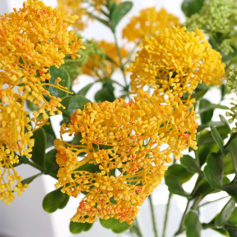 Artificial Spiraea Fruit Branches with Leaves - Yellow