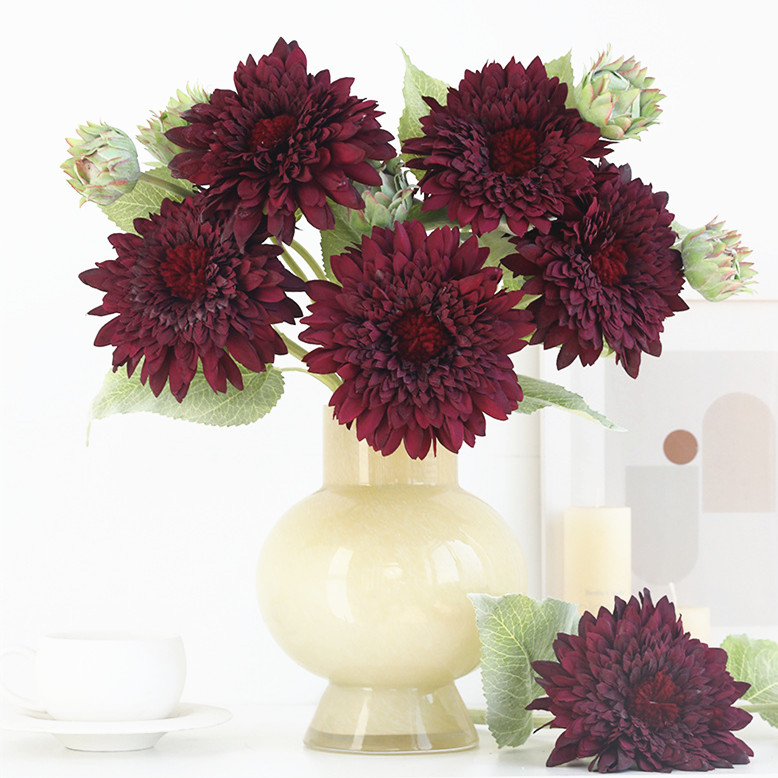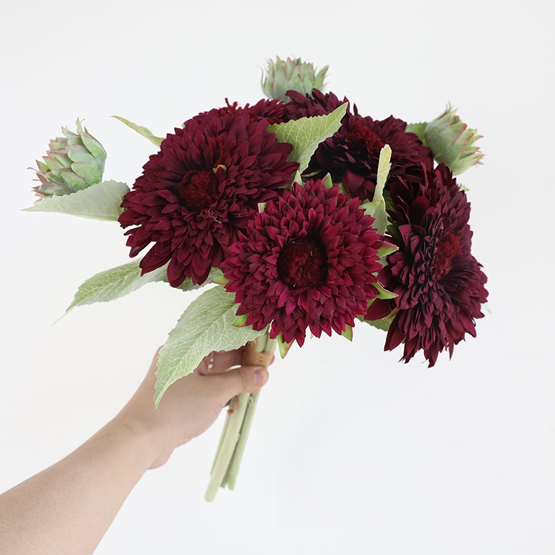 Artificial Sunflowers Silk Flowers Branches - Wine Red