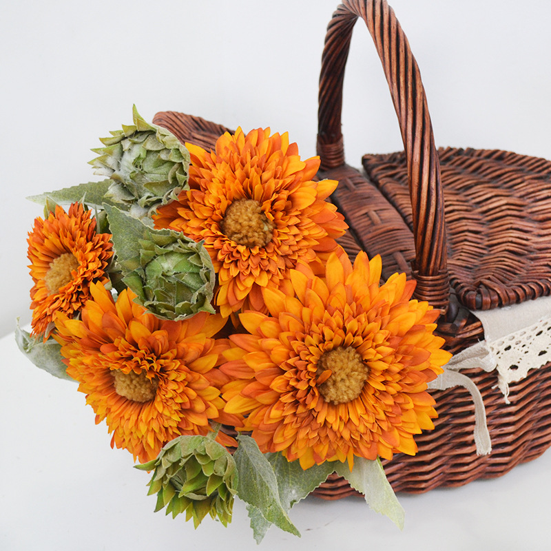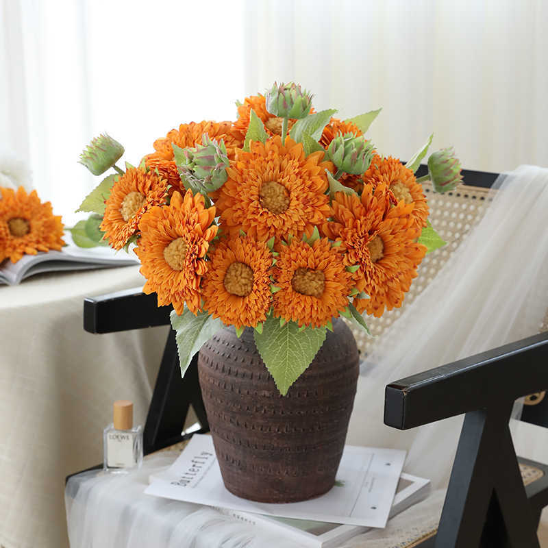 Artificial Sunflowers Silk Flowers Branches - Orange