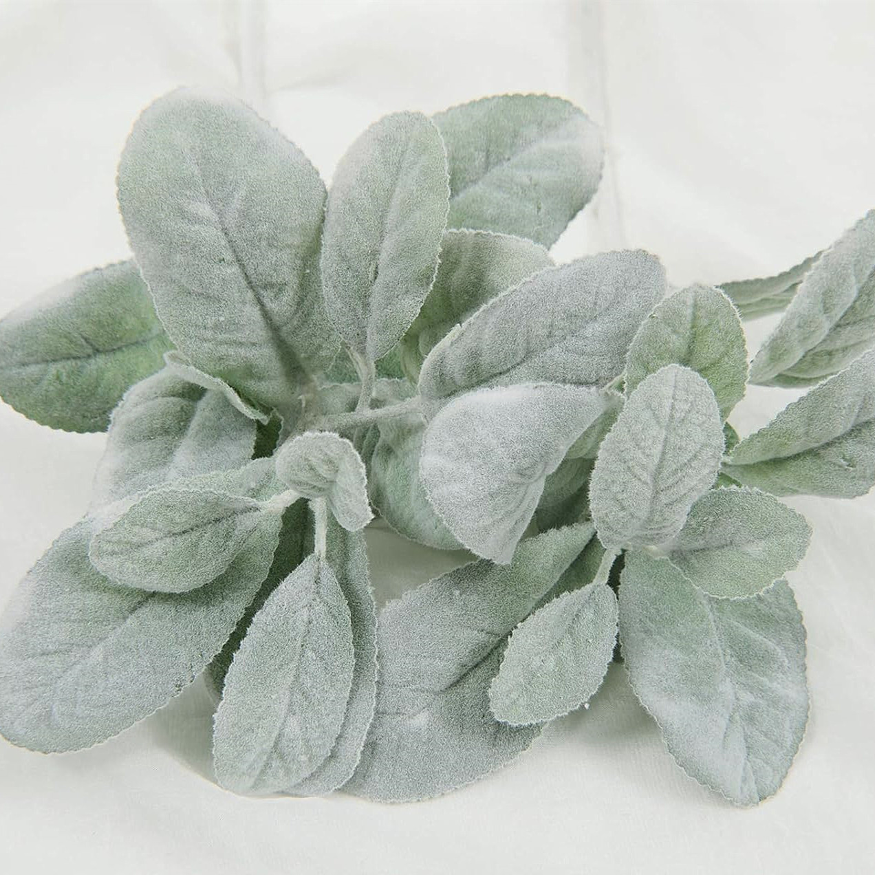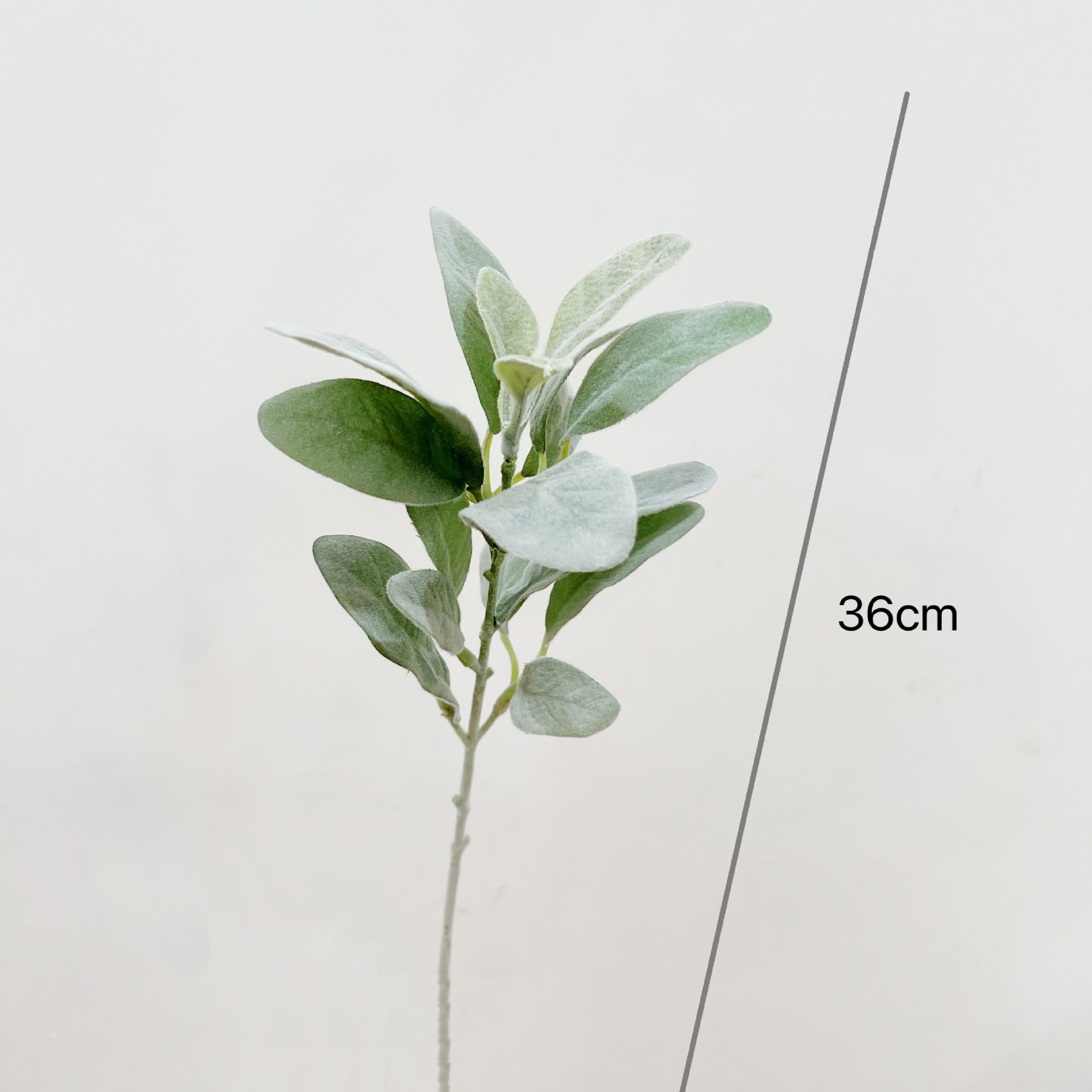 Artificial Plants Lambs Ear Flocking Branches - Grey Green