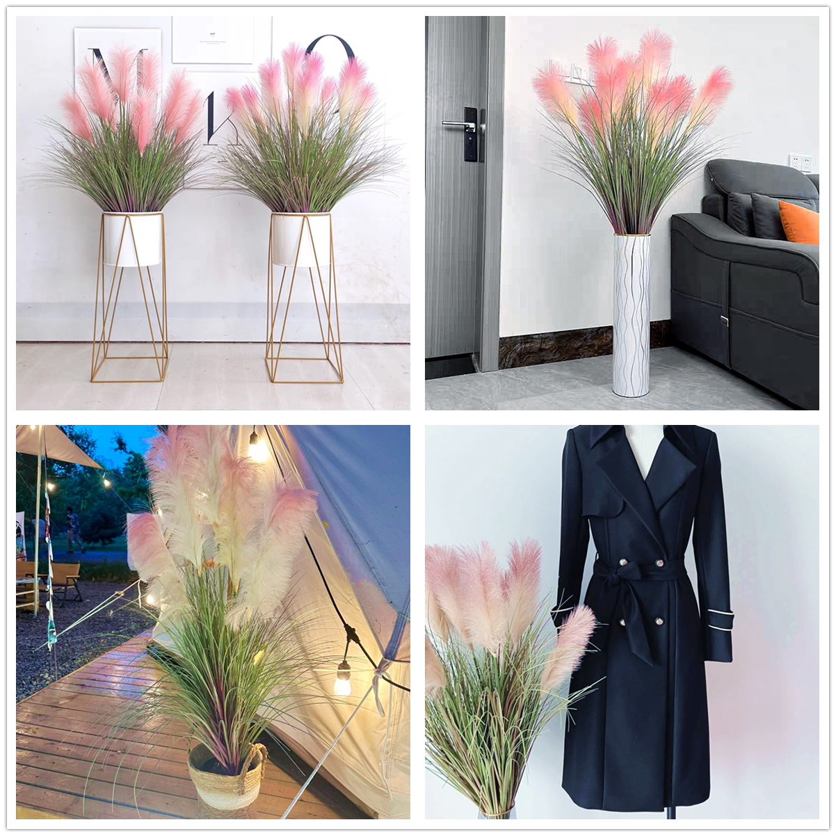 Artificial Tall Onion Grass with Reeds Faux Pampas Shrubs - Pink