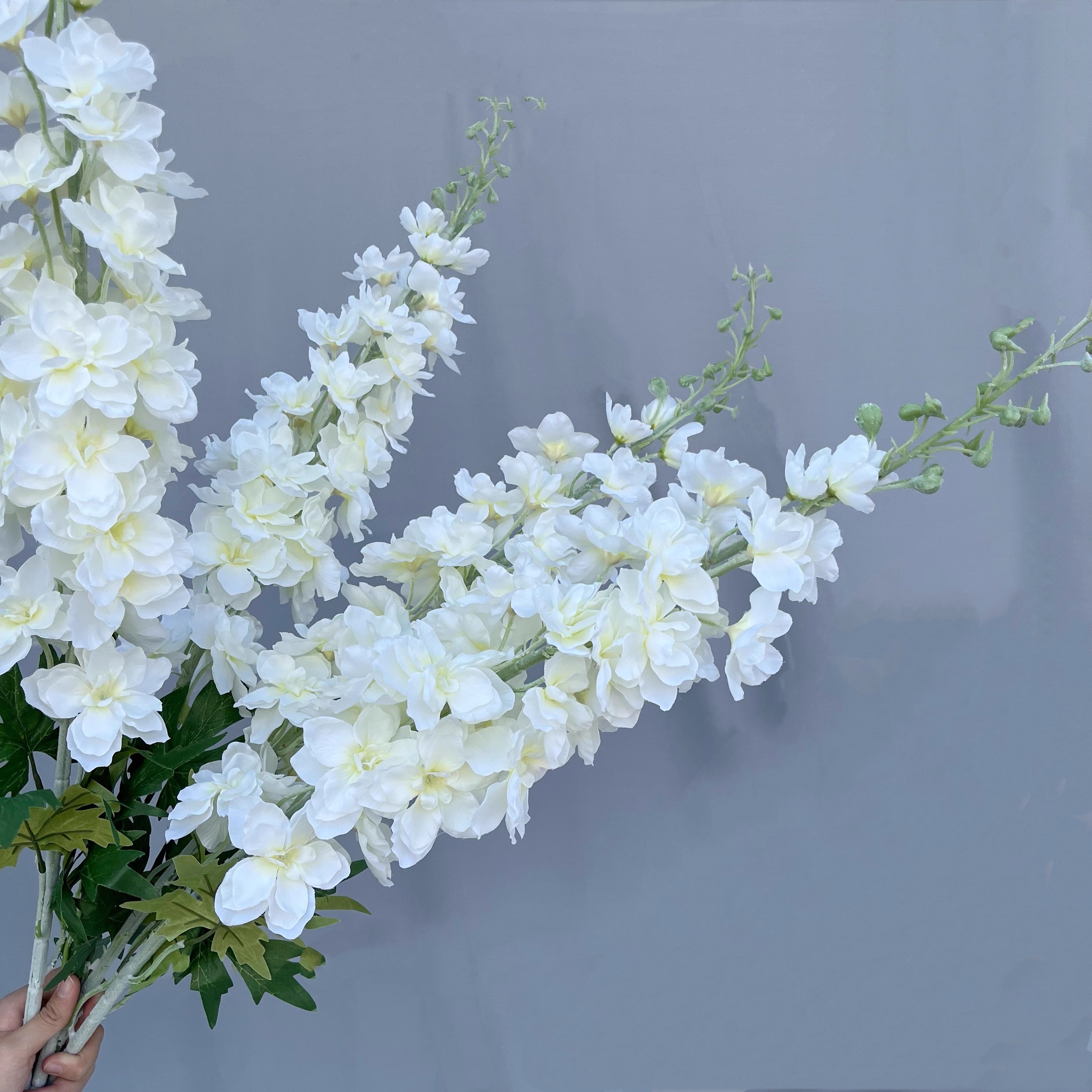 Size: Our Delphinium is long and large, about 47.2''/120cm tall, full of flower heads and buds, and 3 leaves per stem.