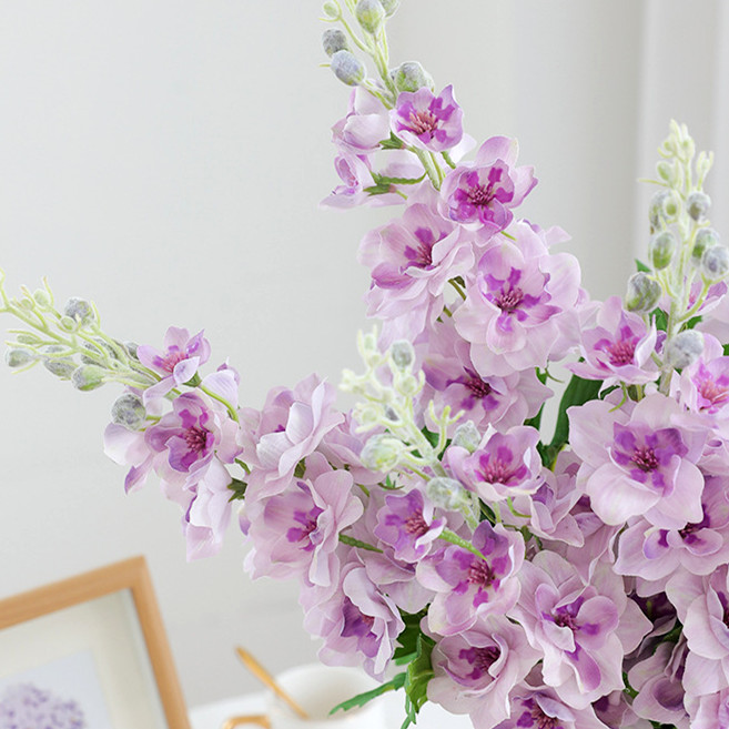 Artificial Delphinium Flowers Silk Matthiola incana Stems - Light Purple