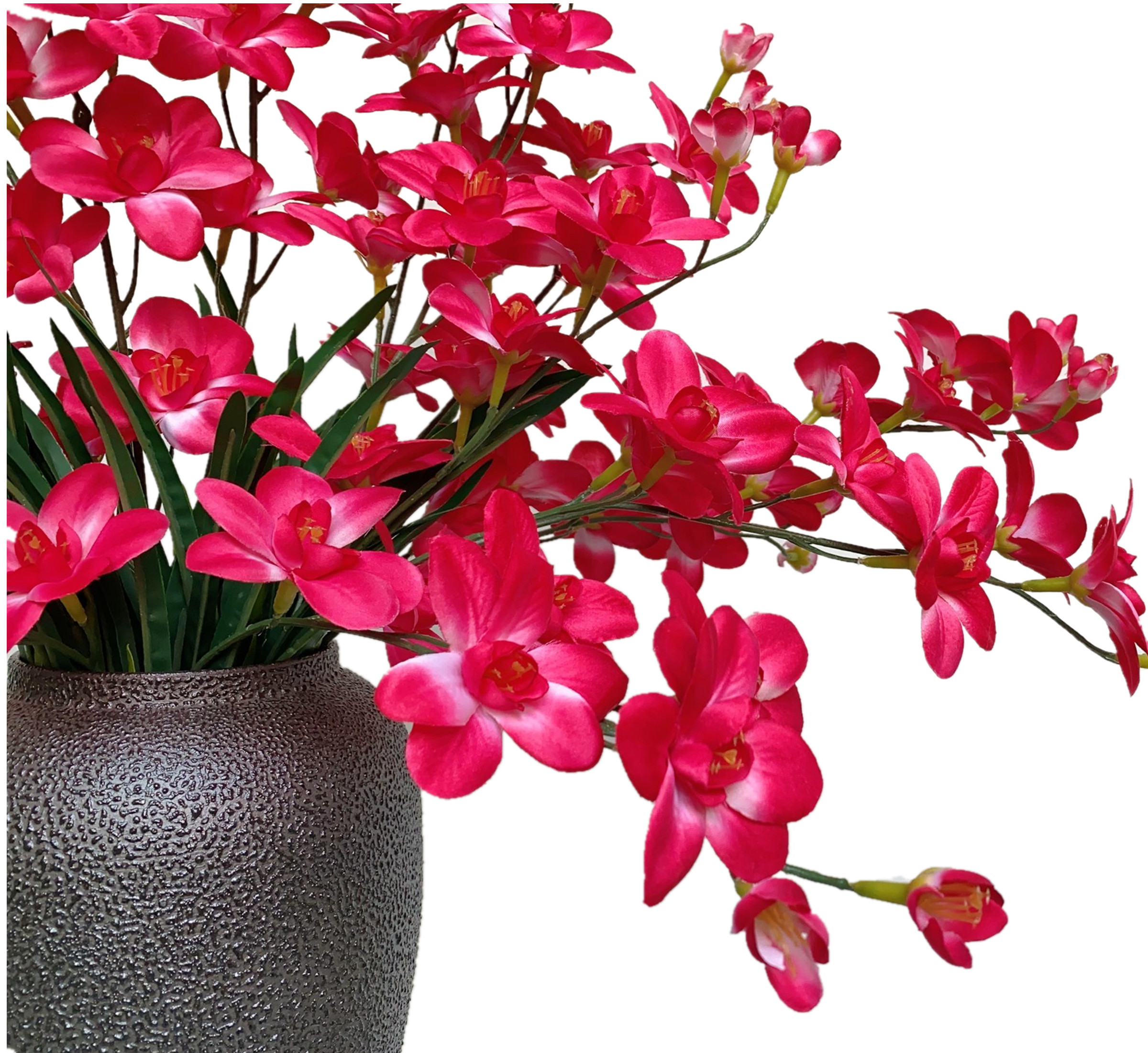 Each branch has 2 flexible stems and 14 blooms + 4 buds + 8 leaves.