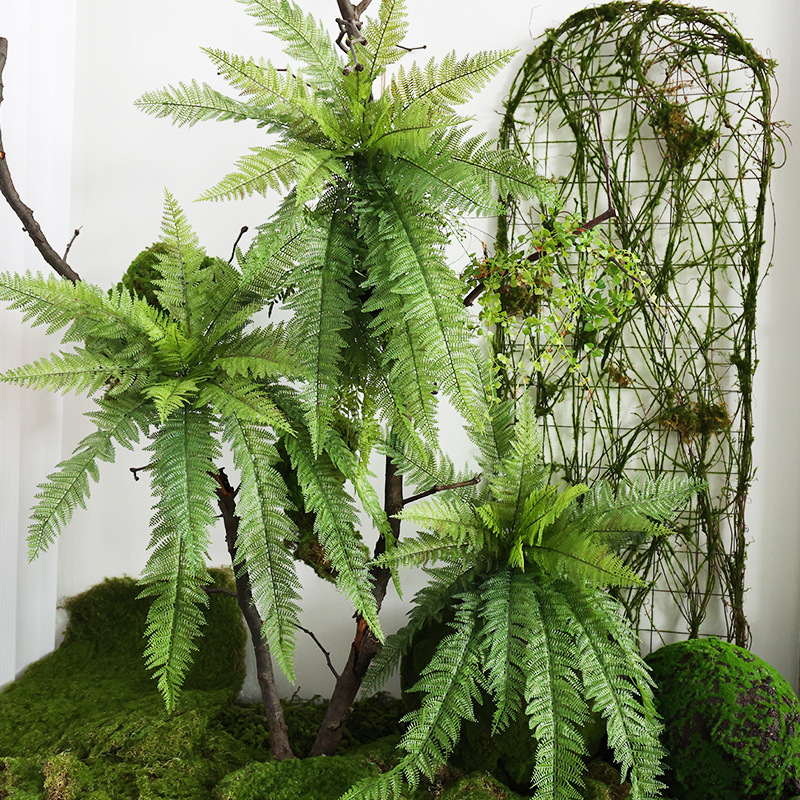 Realistic Ferns - Lifelike artificial ferns with plastic leaves and sturdy stems. Large faux ferns in natural colors require no maintenance, are water-washable, and UV-resistant.