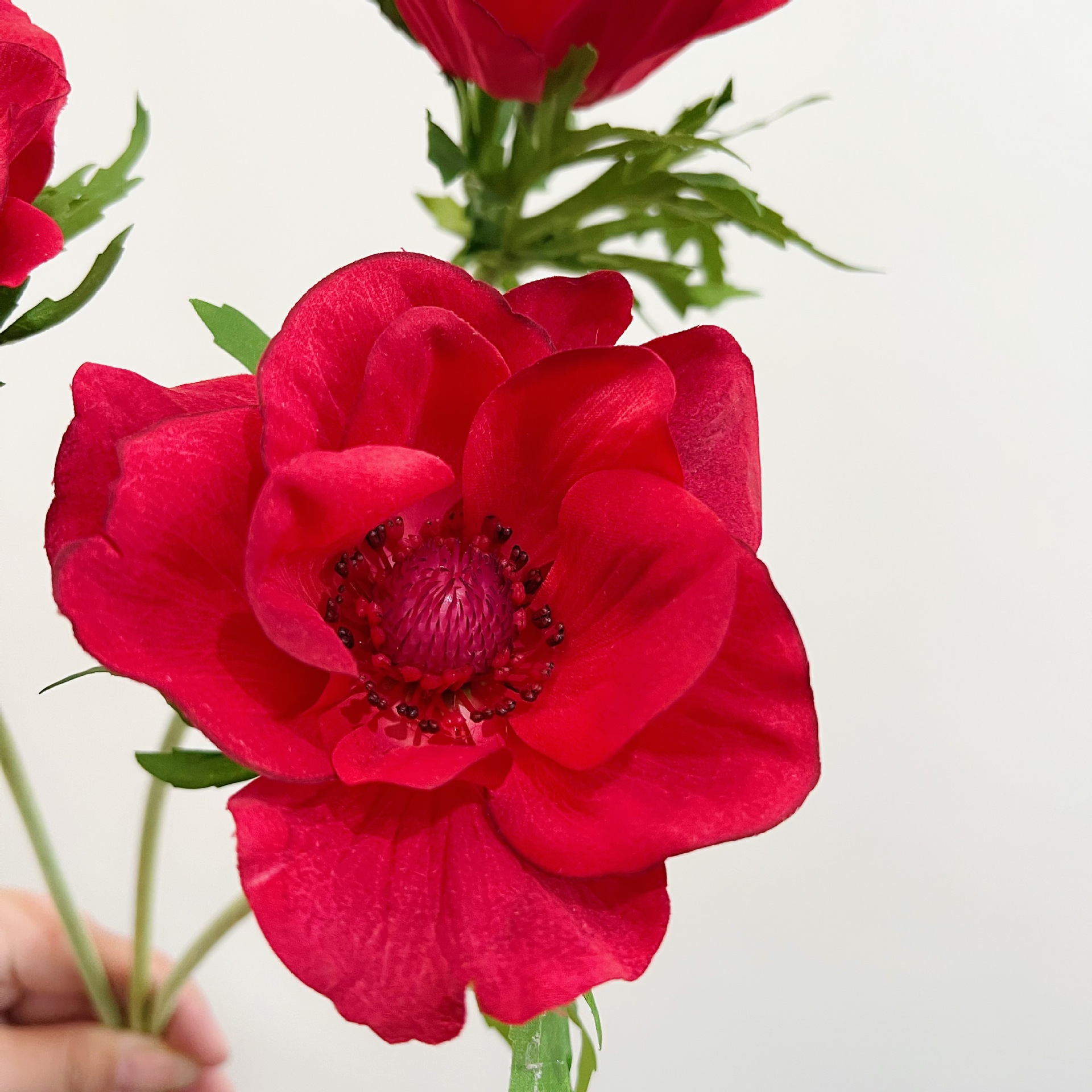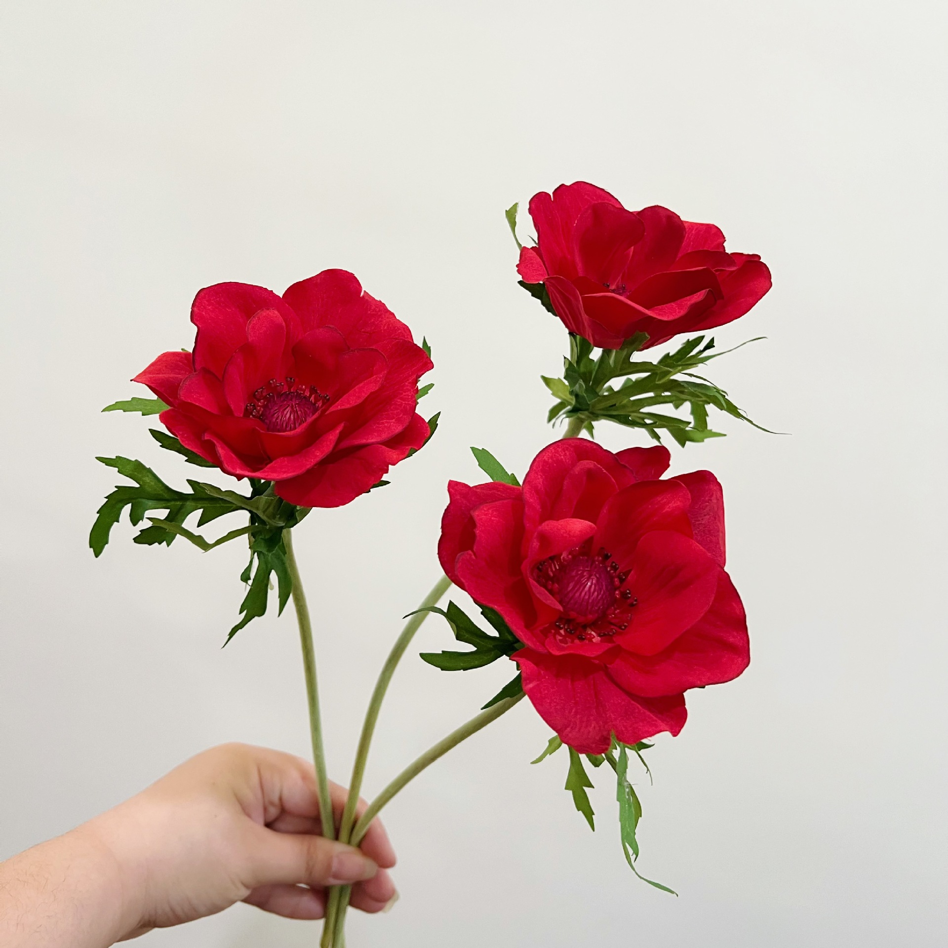 Realistic Anemone Flowers: Artificial blooms with cupped petals on split leaves adding nature and freshness to spaces.