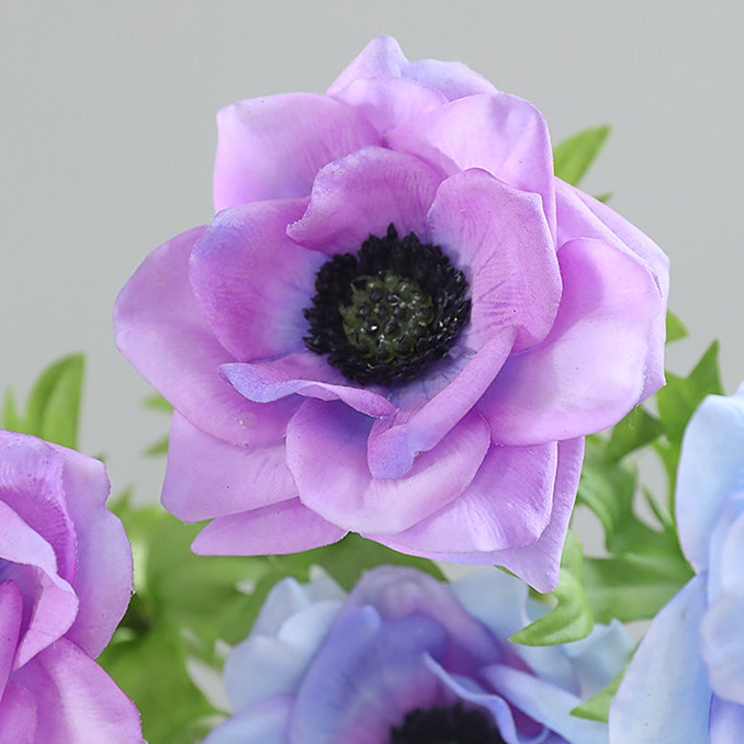 Realistic Anemone Flowers: Artificial blooms with cupped petals on split leaves adding nature and freshness to spaces.