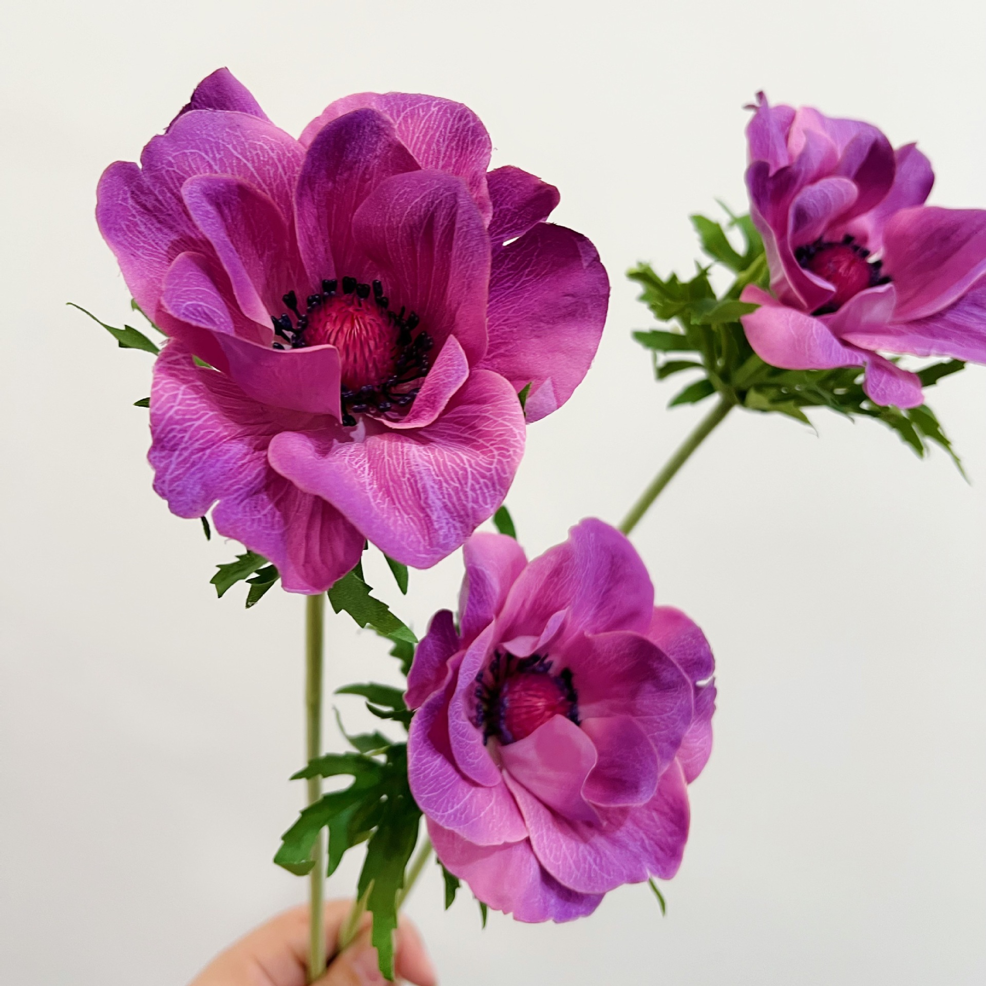Realistic Anemone Flowers: Artificial blooms with cupped petals on split leaves adding nature and freshness to spaces.