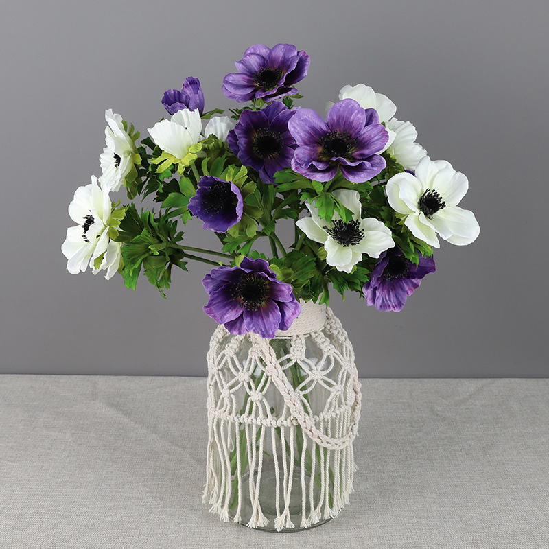 Realistic Anemone Flowers: Artificial blooms with cupped petals on split leaves adding nature and freshness to spaces.