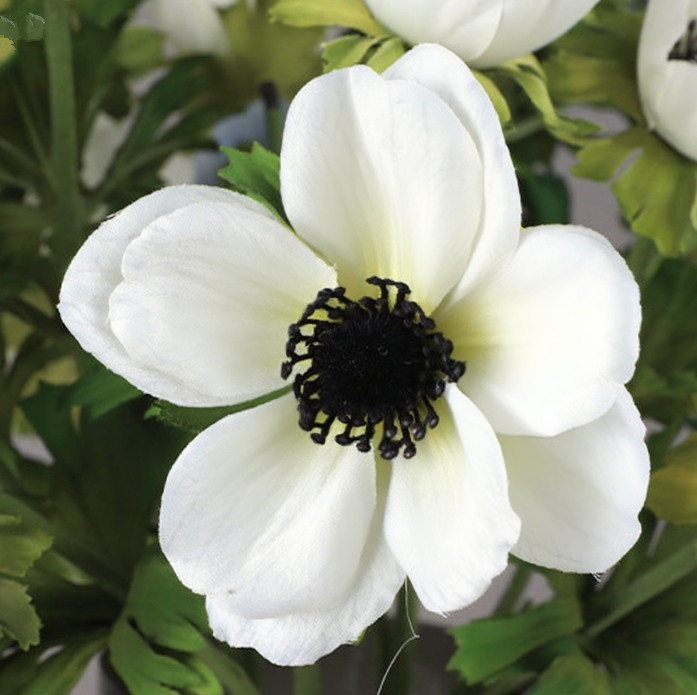 Realistic Anemone Flowers: Artificial blooms with cupped petals on split leaves adding nature and freshness to spaces.