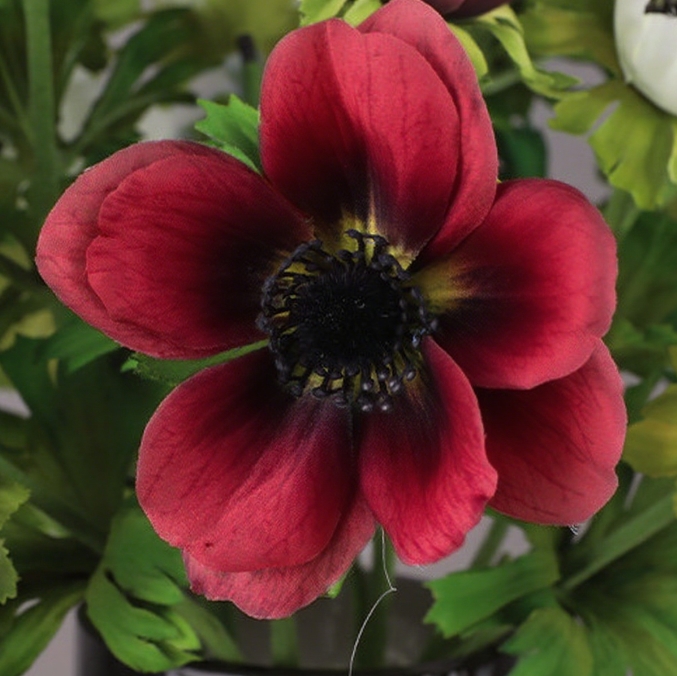 Realistic Anemone Flowers: Artificial blooms with cupped petals on split leaves adding nature and freshness to spaces.