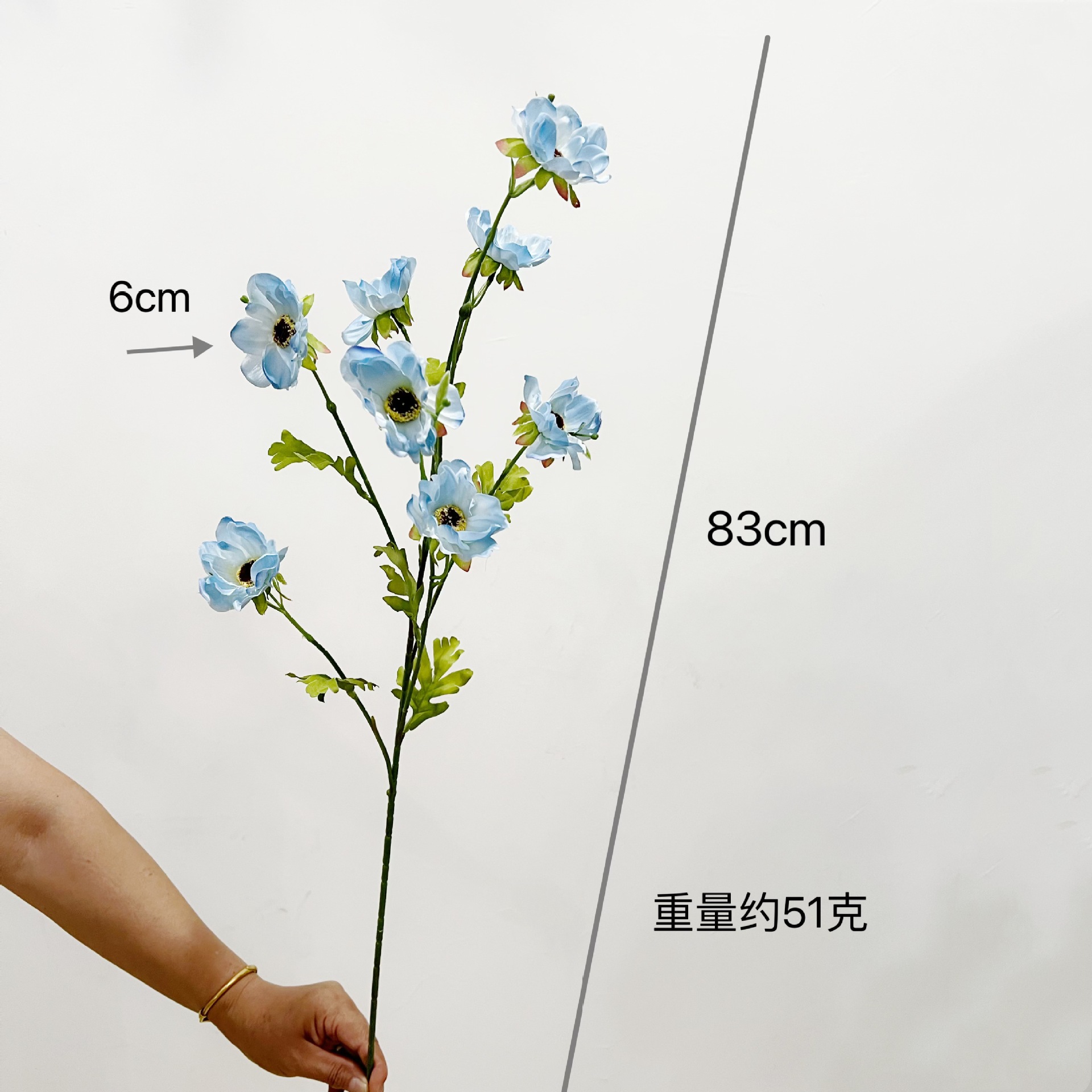 Anemone Flowers Artificial Silk Flowers with 8 Blossoms - Light Blue