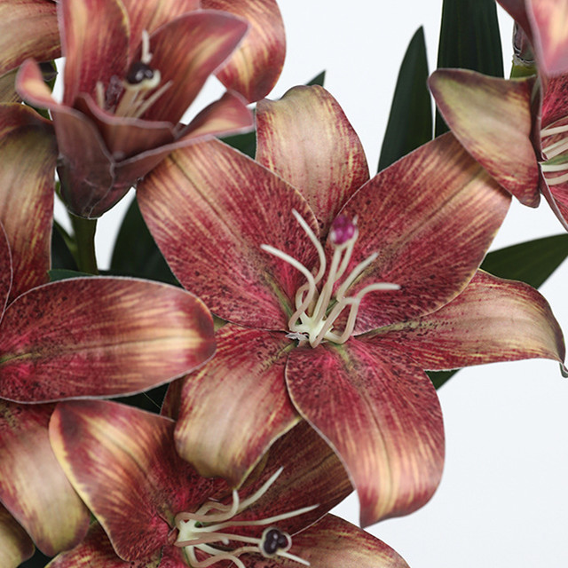 Vintage Style Real Touch Lily 3D Printing Artificial Flower - Brown