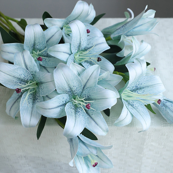 Vintage Style Real Touch Lily 3D Printing Artificial Flower - Crystal Blue