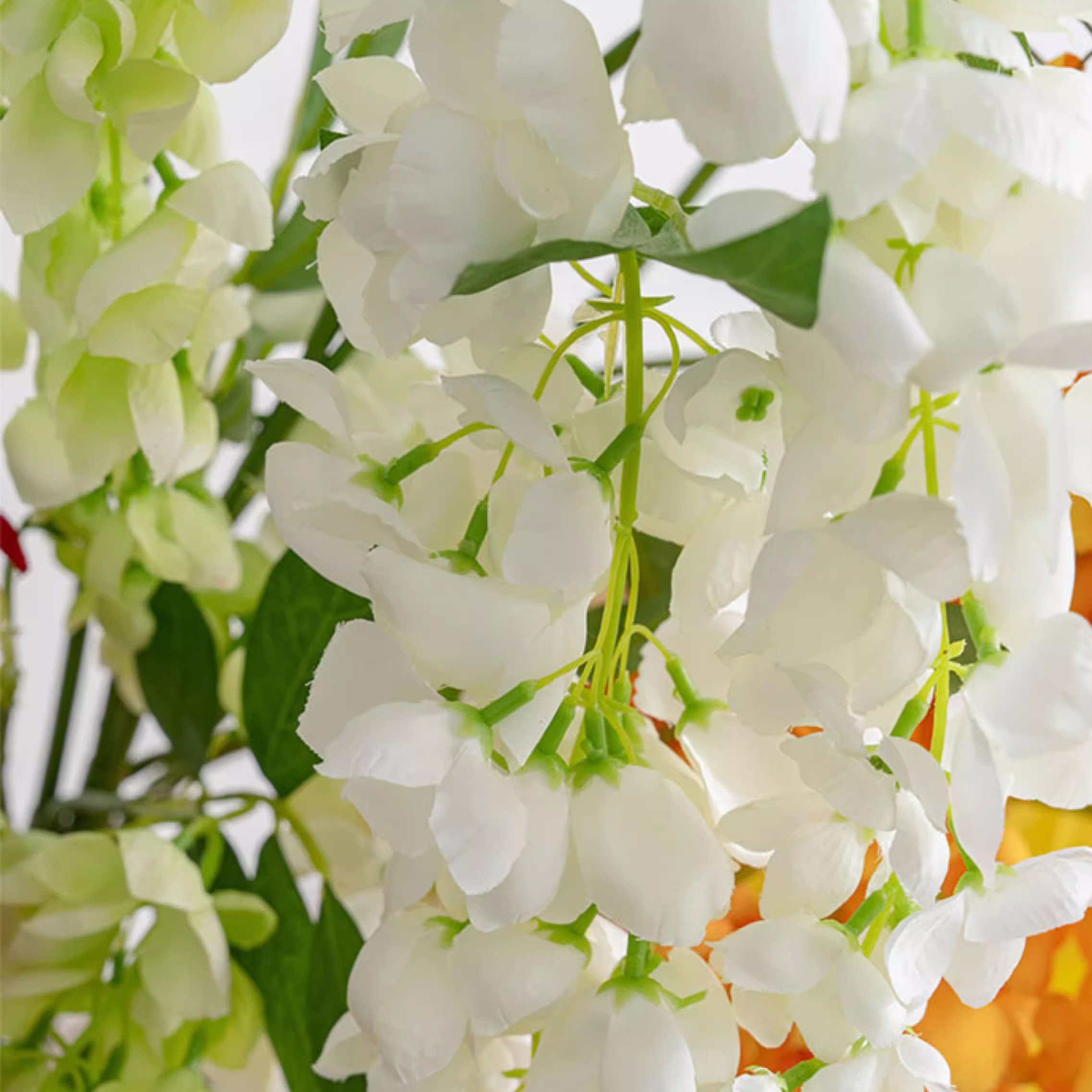 Artificial Wisteria Silk Flowers Hanging Plant - White
