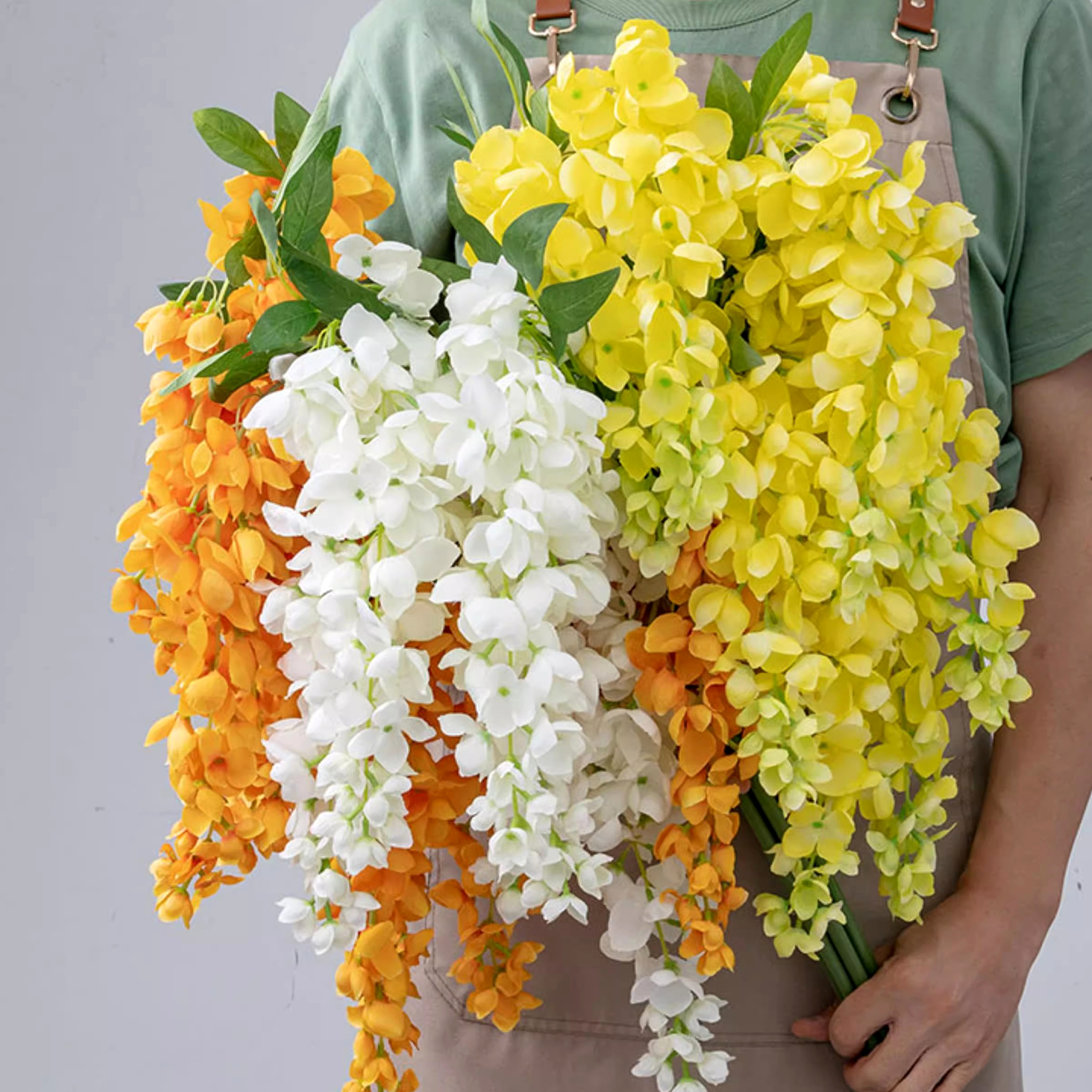 MATERIAL: Made from silk for the flowers, which are dyed and waterproof to prevent fading. The stems are plastic, flexible yet sturdy, allowing them to be bent and shaped as needed.
